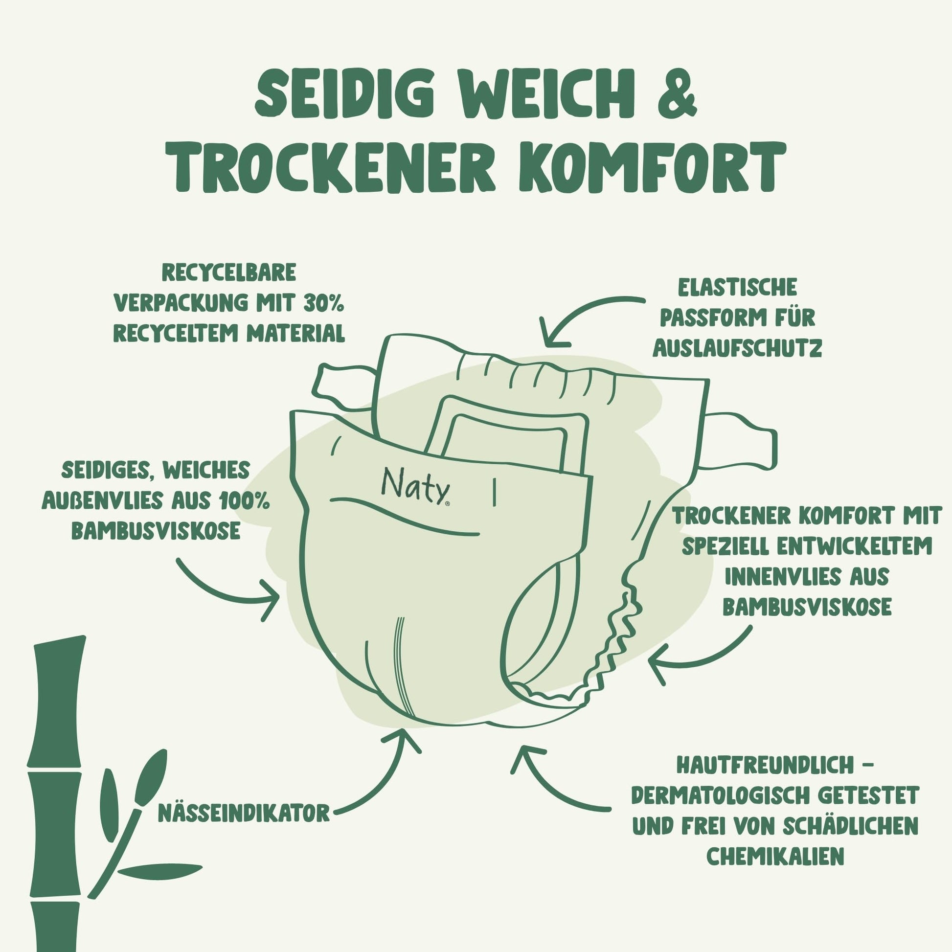 Naty Bamboo Baby Viscose Nappies – Size 2 (88 Pieces) - Silk-Soft, Plant-Based, Dermatologically Tested & Super Absorbent